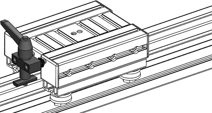 Le montage du kit frein est simple et ne nécessite que quelques étapes. Le serrage s’effectue à l’aide d’une poignée reprise dans un coulisseau simple, fixé dans la rainure. Cela permet un ajustement simple et une installation rapide sur vos systèmes de guidage.