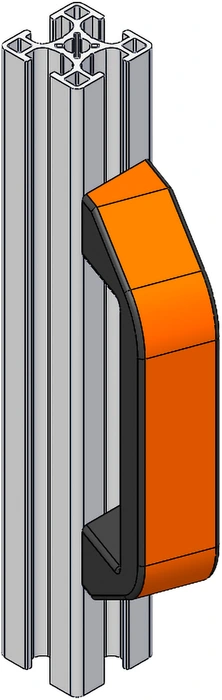 Cette poignée de manœuvre fermée pour profilé aluminium est conçue pour offrir une prise en main ergonomique tout en protégeant les doigts des zones de coincement lors de la fermeture des portes. Son plastique bicolore noir et orange assure une bonne visibilité et une robustesse optimale pour une utilisation en environnement industriel.