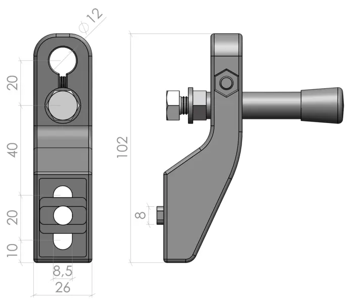 Le support de rive réglable relie les rives au châssis en aluminium de votre convoyeur. Il s’adapte aux profilés avec rainures 8″45 et 8″40. Avec un réglage de 28mm, il offre une flexibilité d’installation et un ajustement précis.