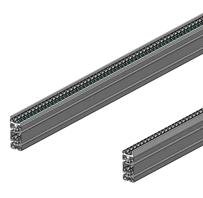 Premièrement, le profilé 45×90 offre une structure robuste et légère, idéale pour les applications nécessitant à la fois solidité et compacité. Ensuite, le rail guide chaîne intégré assure un guidage précis de la chaîne tout en servant de rive pour maintenir le plateau en place. Enfin, le retour de chaîne intégré dans le profilé permet un design compact et efficace, facilitant ainsi l’installation et la maintenance.